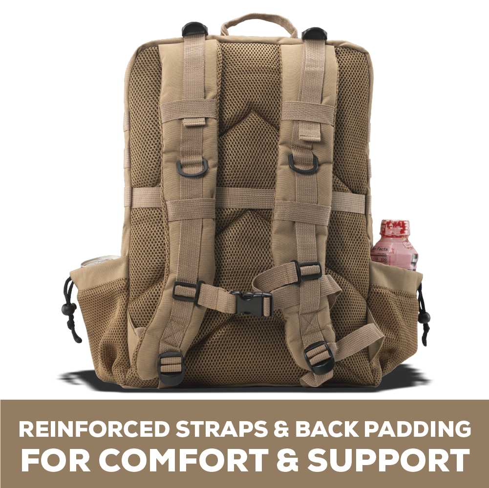 The 45L Tactical Backpack is the perfect blend of durability and functionality, featuring dual adjustable cup holders for secure bottle storage, a padded protective pouch for laptops or tablets, and reinforced straps with ergonomic padding for all-day comfort and support....