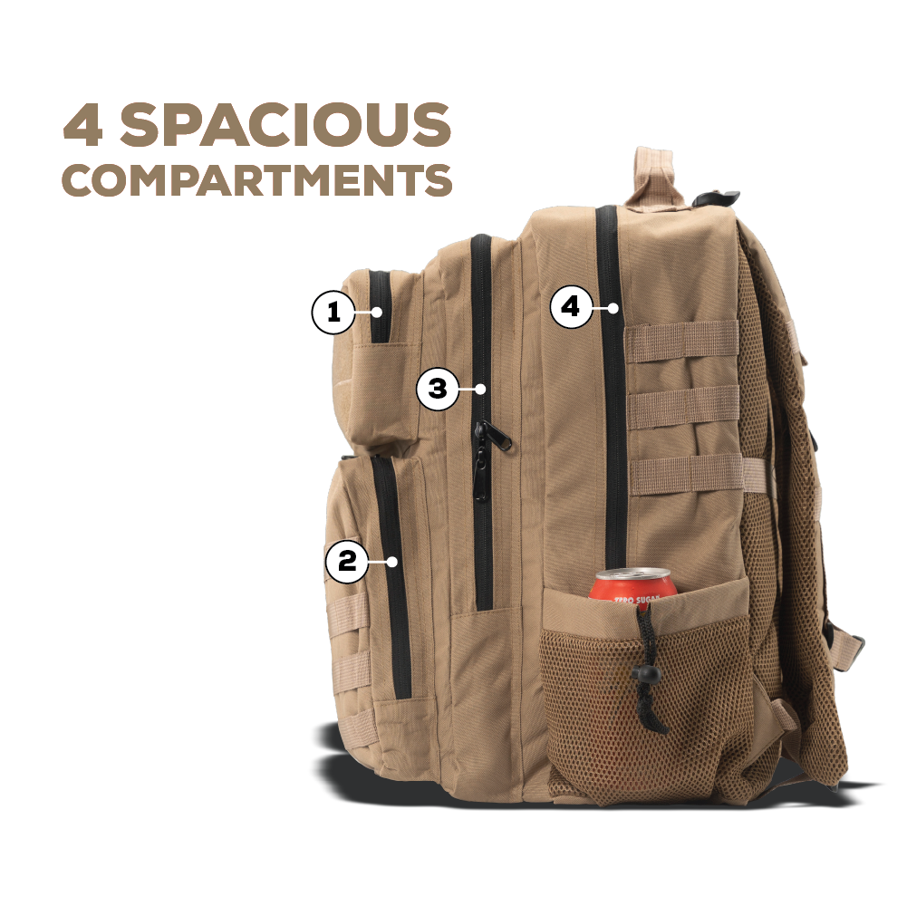 The 45L Tactical Backpack is the perfect blend of durability and functionality, featuring dual adjustable cup holders for secure bottle storage, a padded protective pouch for laptops or tablets, and reinforced straps with ergonomic padding for all-day comfort and support. Designed for optimal organization, it offers four spacious compartments with interior dividers and secures your gear with industrial-grade zippers built to withstand the toughest conditions. Rugged yet versatile, this backpack is ideal for the gym, work, or everyday use.