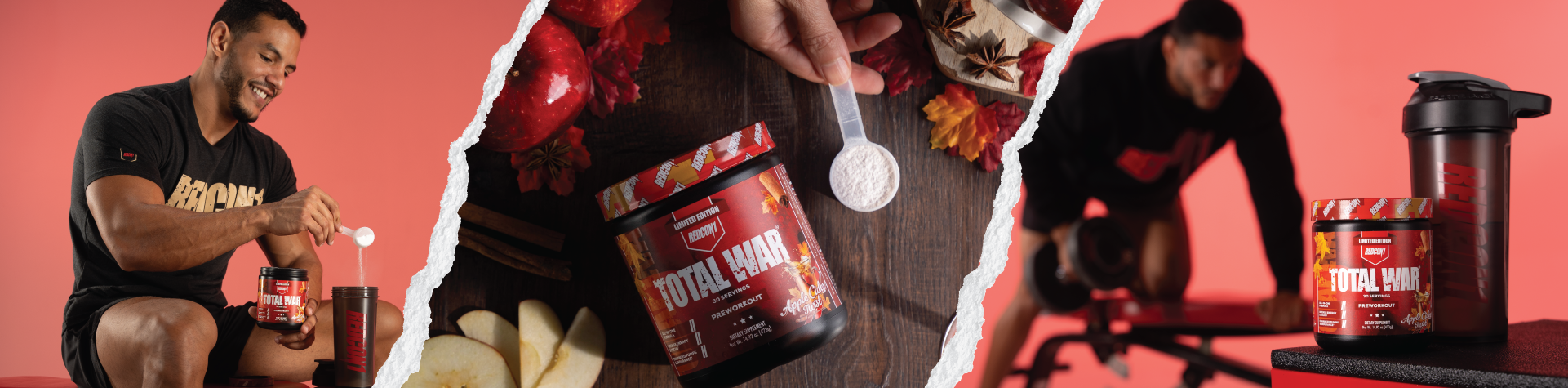 TOTAL WAR packs 320mg caffeine, 3.2g beta-alanine, and 6g citrulline malate, delivering raw endurance, explosive energy, and skin-splitting pumps in every scoop. With TOTAL WAR Apple Cider Twist, you’ll bring relentless focus and unmatched power to every rep. It’s time to dominate and reach your HIGHEST STATE OF READINESS.